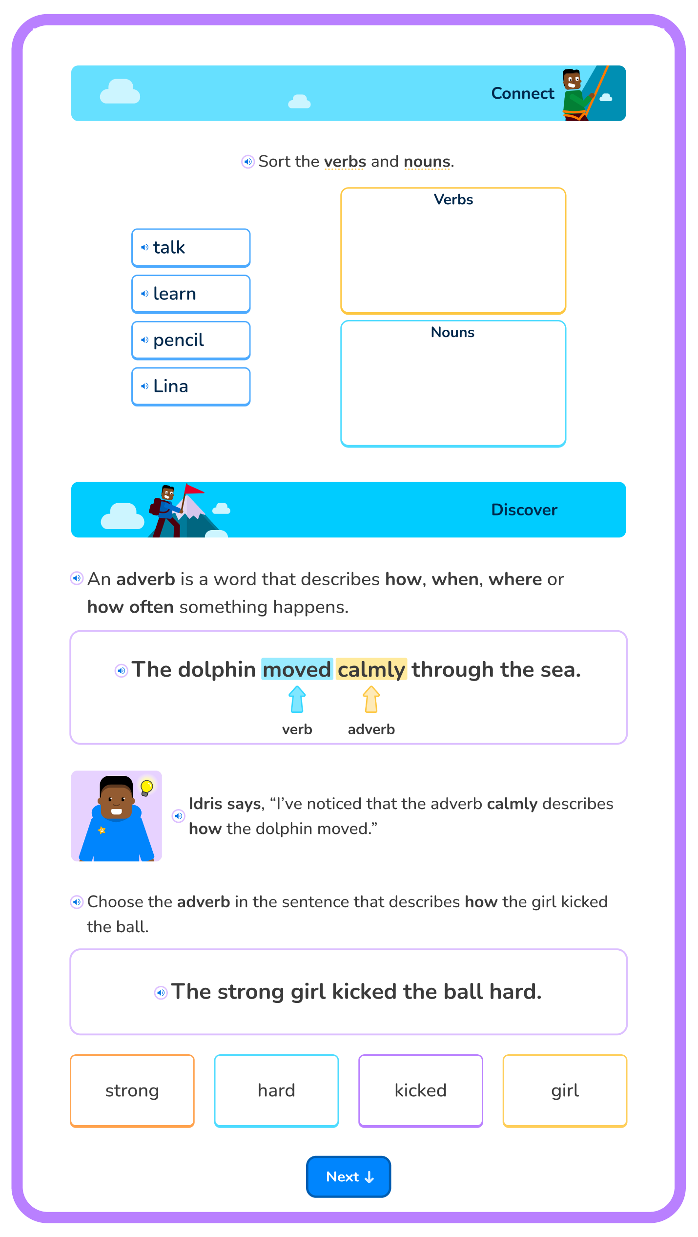 Breaks down negative associations with spelling, grammar and punctuation by gradually introducing topics in a fun and engaging way